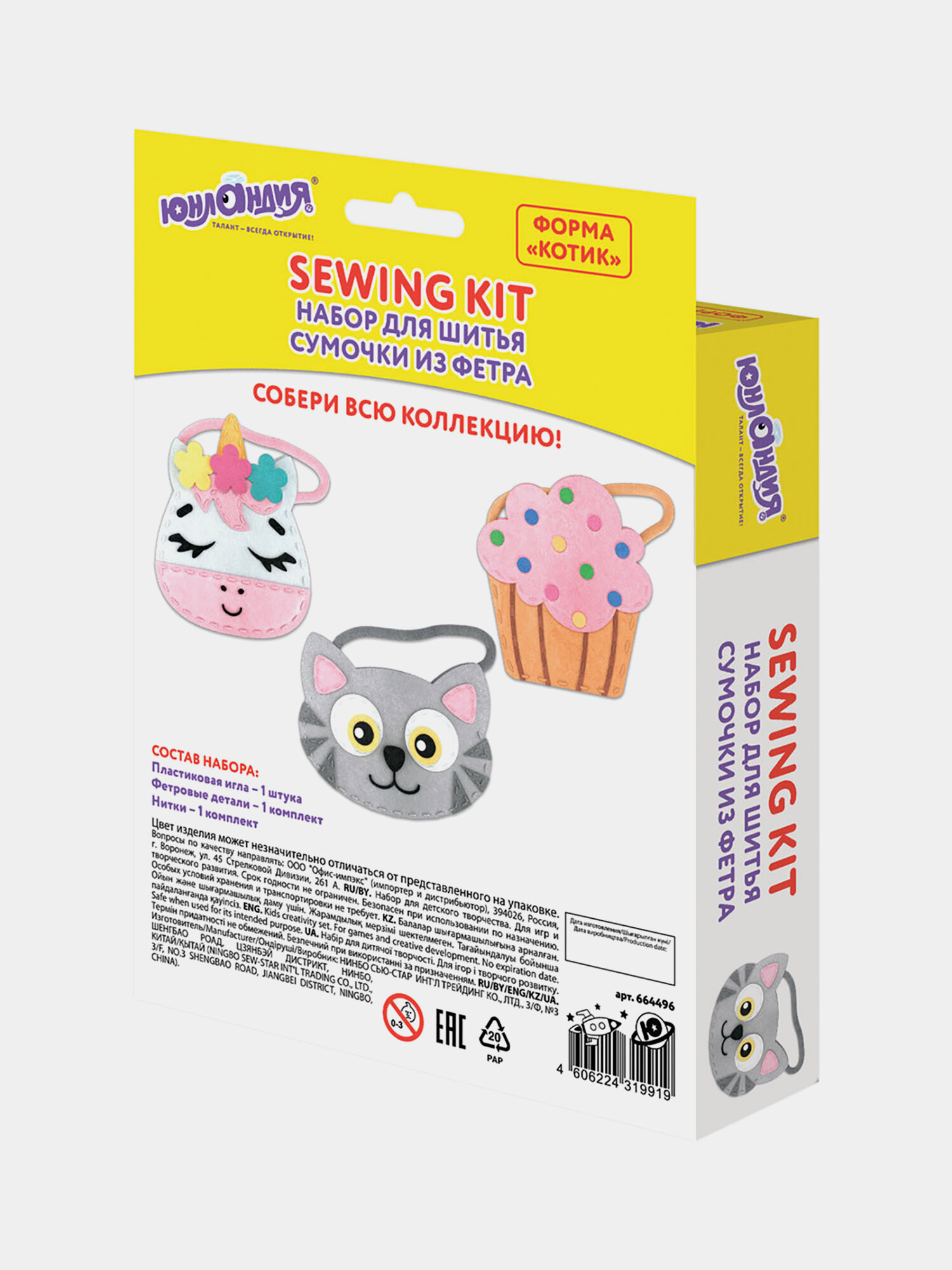 Набор для творчества и рукоделия для шитья сумки / сумочки из фетра для девочек / детей Котик, Юнландия, 664496