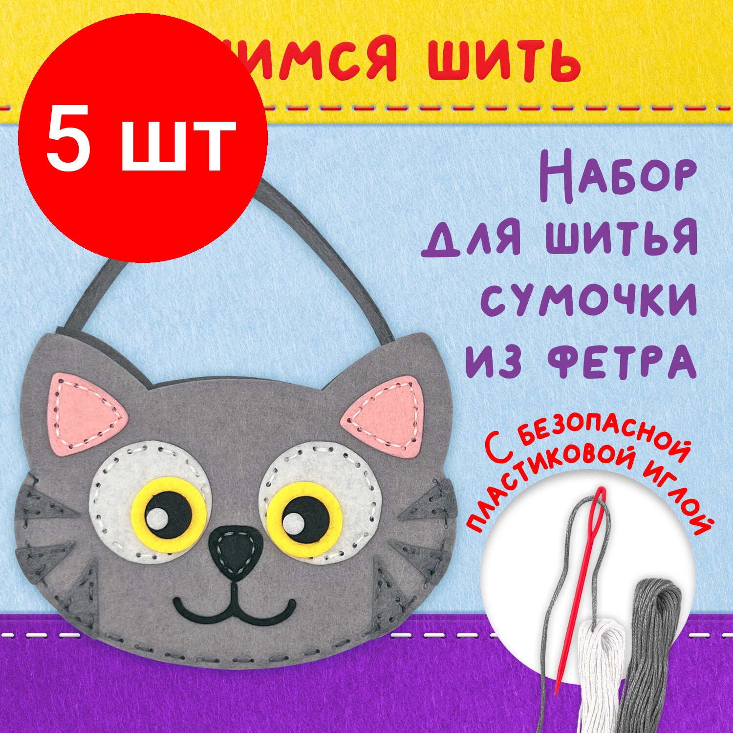 Комплект 5 шт, Набор для шитья сумочки из фетра "Котик", юнландия, 664496