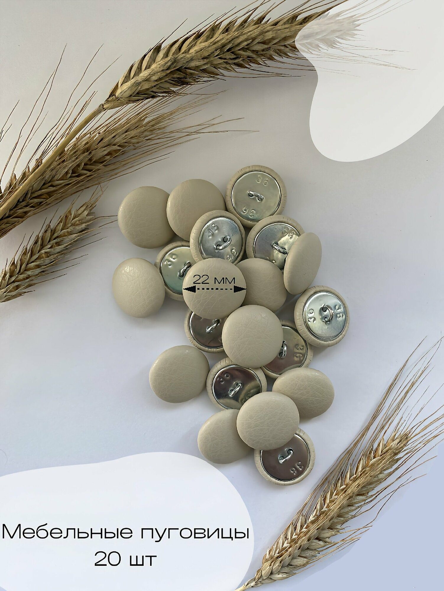 Пуговицы для каретной стяжки, кожзам светло-бежевый 20 шт интересное:
