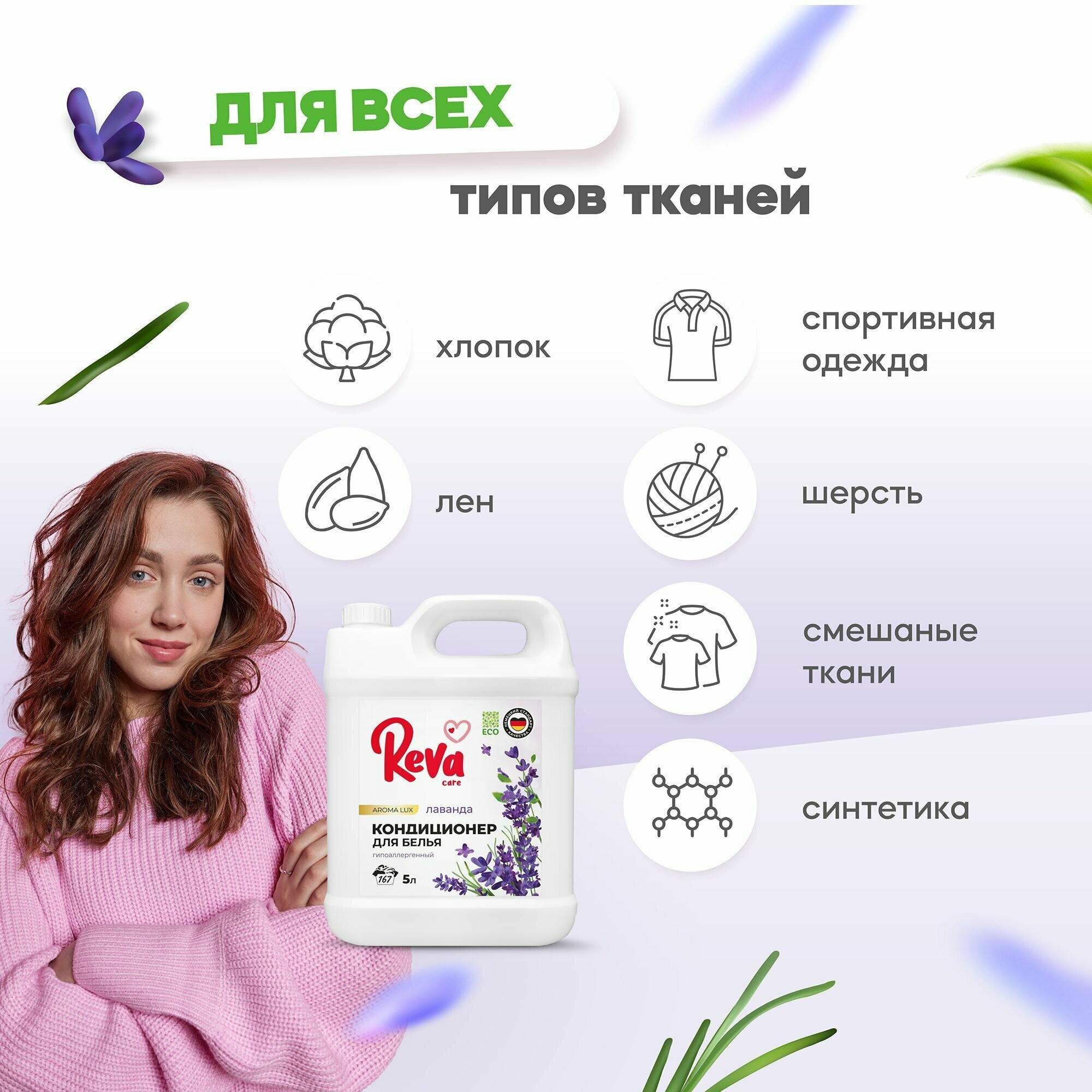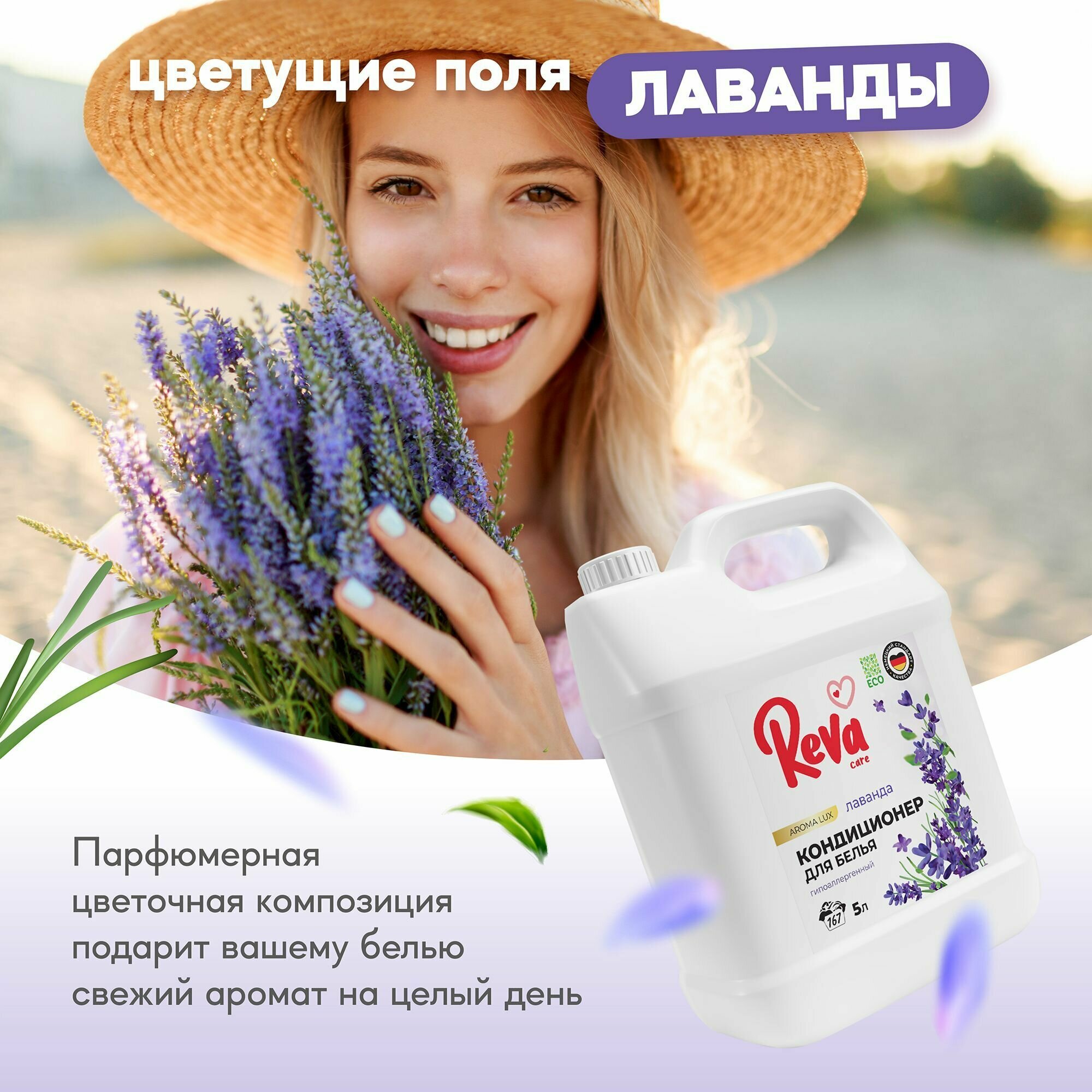 Купить Кондиционер для белья Reva Care Aroma LUX Лаванда гипоаллергенный, концентрированный на 200 стирок, жидкое средство для стирки, 5 литров