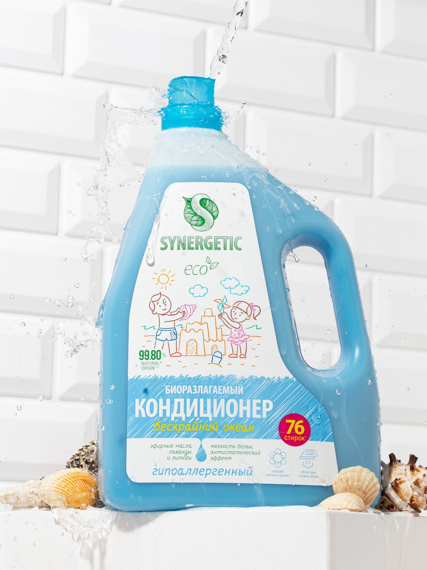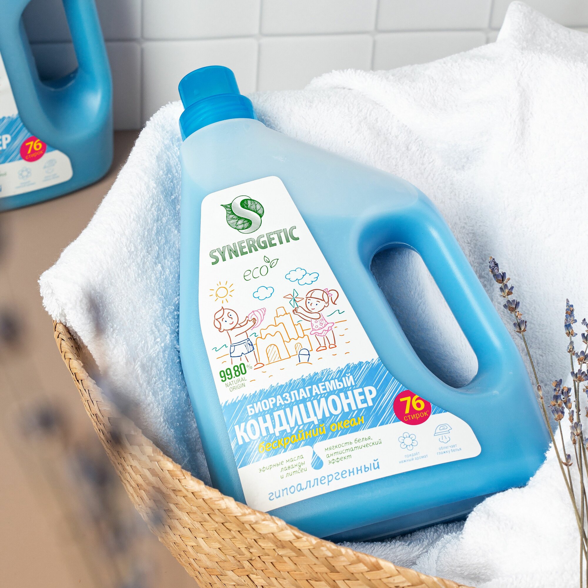 Кондиционер-ополаскиватель для белья SYNERGETIC "Бескрайний океан", 2,28 л (76 стирок) интересное: