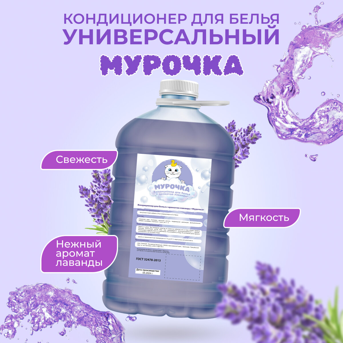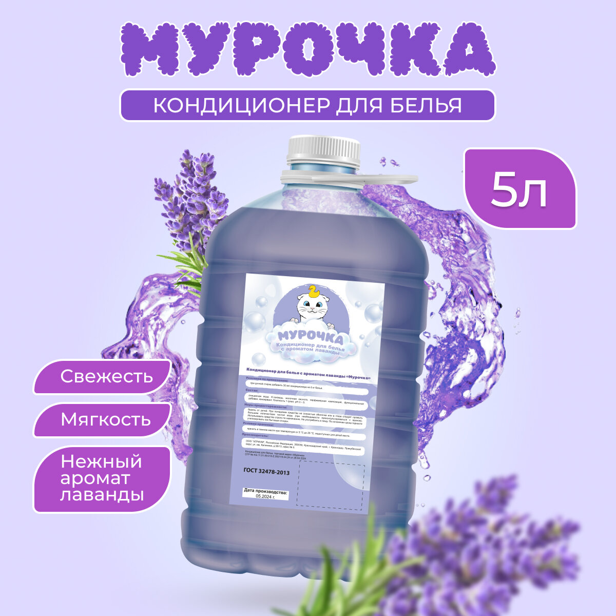 Кондиционер ополаскиватель для белья "Мурочка" аромат Лаванда, 5л интересное: