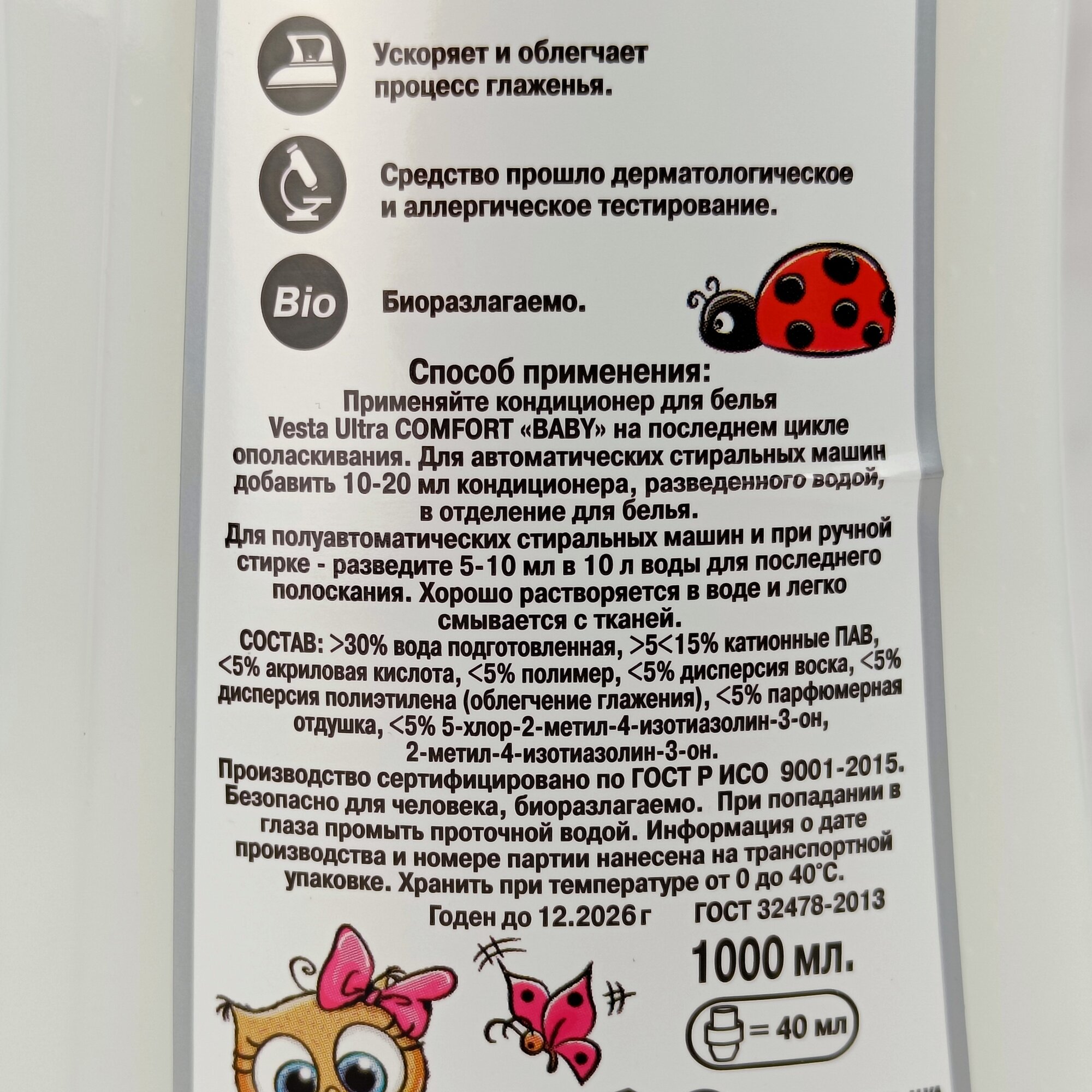 | Эффект | антибактериальный / антистатический / легкая глажка / смягчение ткани / устранение неприятных запахов |