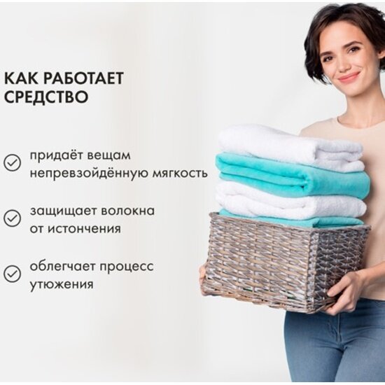 | Способ применения | 1. Машинная стирка: добавьте в стиральную машину 40 мл кондиционера на одну загрузку в 4-5 кг. 2. Ручная стирка: перед последним полосканием добавьте 30 мл кондиционера и оставьте на 3-5 минут, затем прополощите в воде. При выборе режима стирки и температуры следуйте рекомендациям, указанным на ярлыках изделия. |