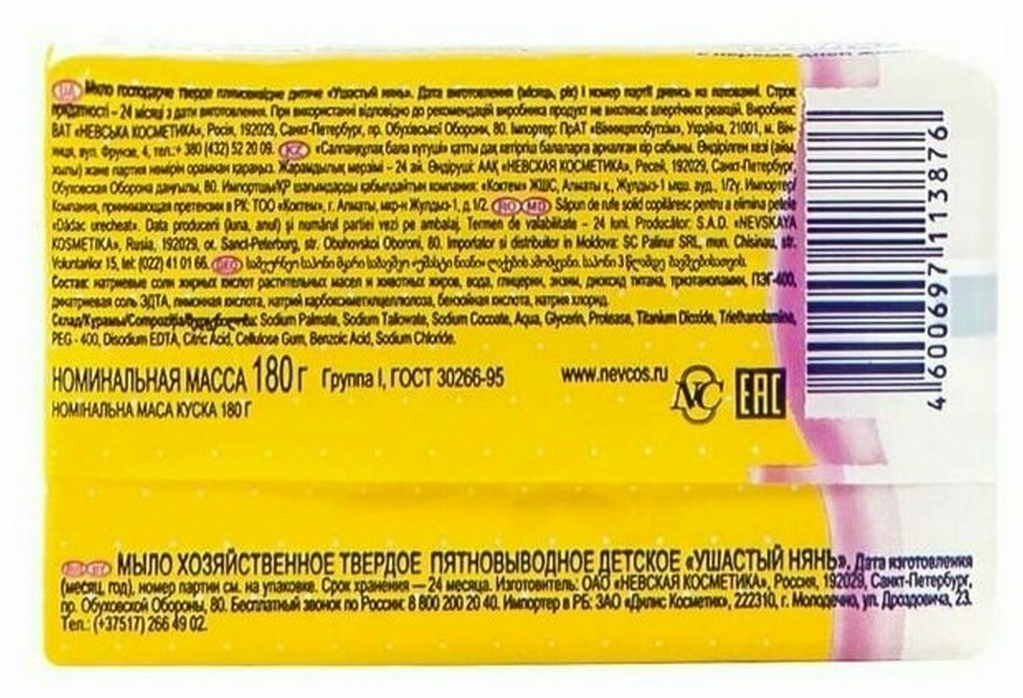 Купить Ушастый Нянь Хозяйственное мыло Против пятен для детского белья, 0.18 кг - 1 шт