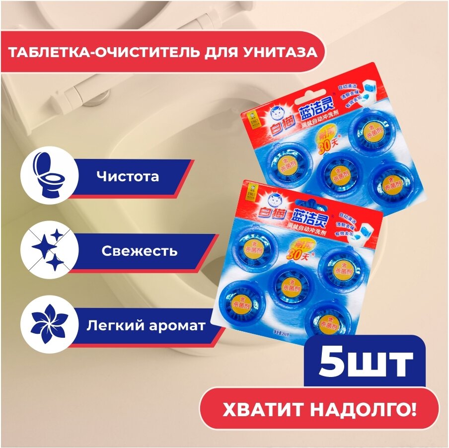 Таблетки очищающие для сливного бачка унитаза BAIMAO, "Ланьцзелин", 5шт интересное: