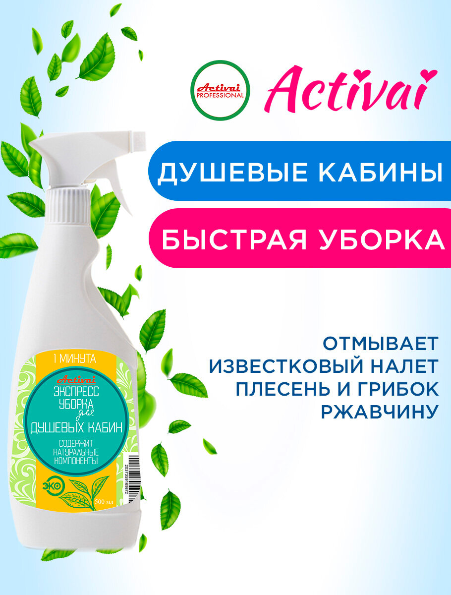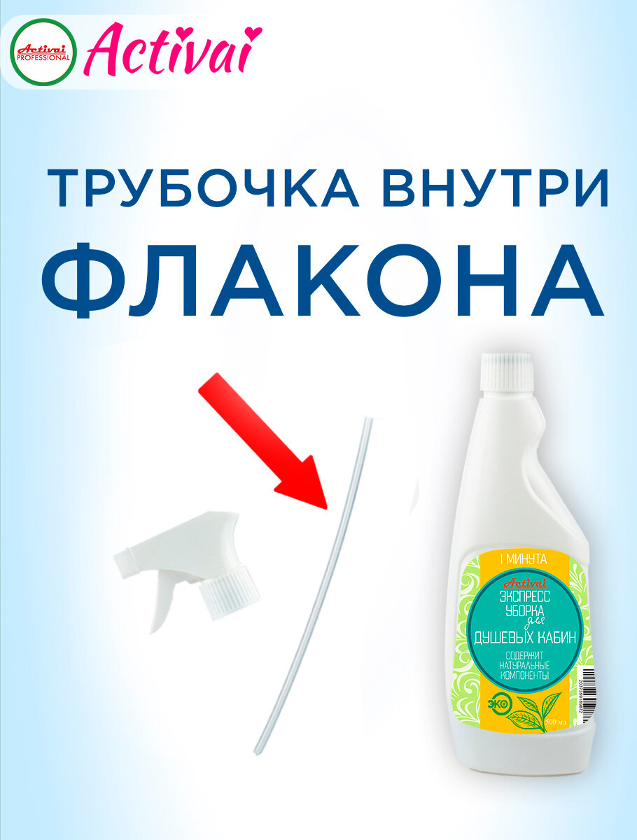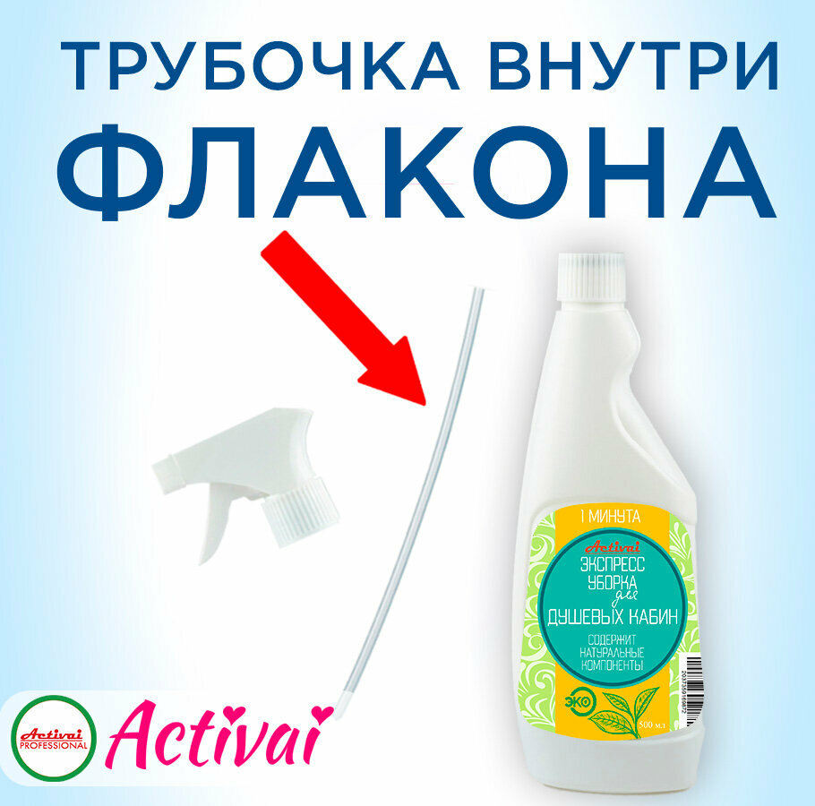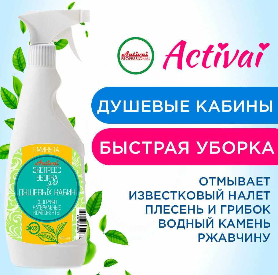 Средство для душевых кабин, чистящее средство для ванны, средство от известкового налета, удалитель ржавчины, очиститель пластика, антиналет, бытовая химия, концентрат, спрей 500 мл. Быстрая уборка Activai PROFESSIONAL