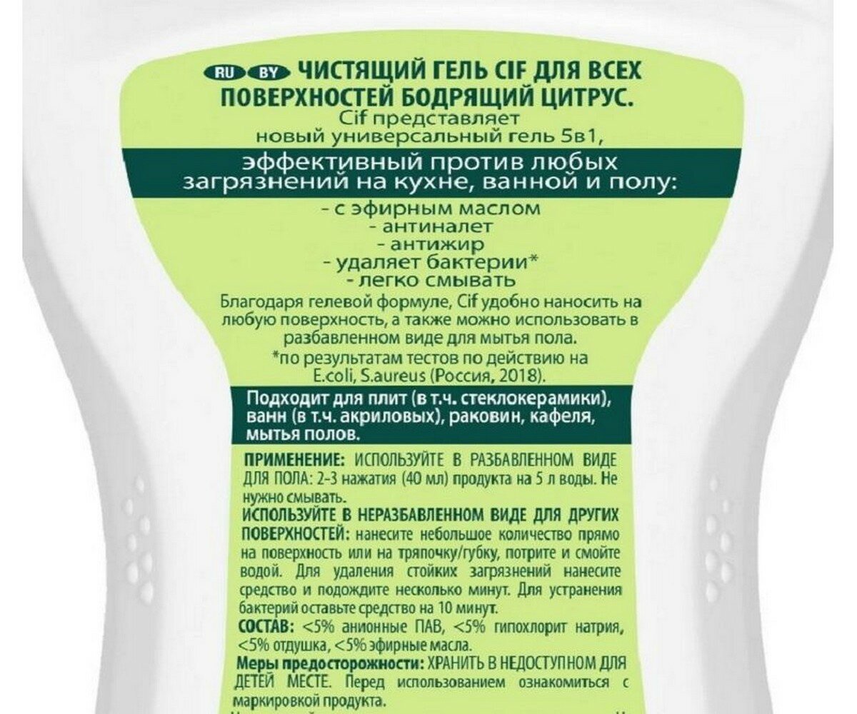 Cif чистящий гель для всех поверхностей бодрящий цитрус 750 мл интересное: