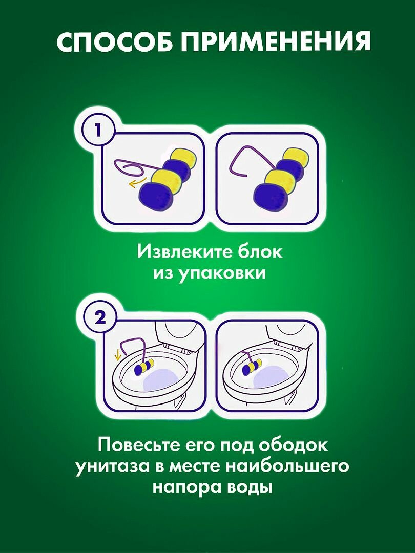| Подробная комплектация | Средство для унитаза - 2 упаковки (8 сменных блоков) |
