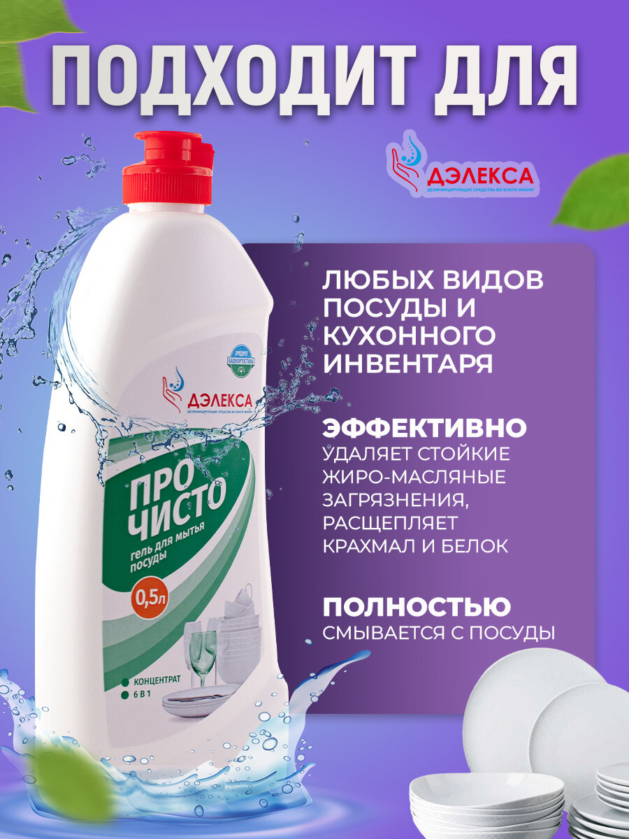 Средство для мытья посуды ПроЧисто, гель, 0,5 литра, без хлора, с дозатором интересное: