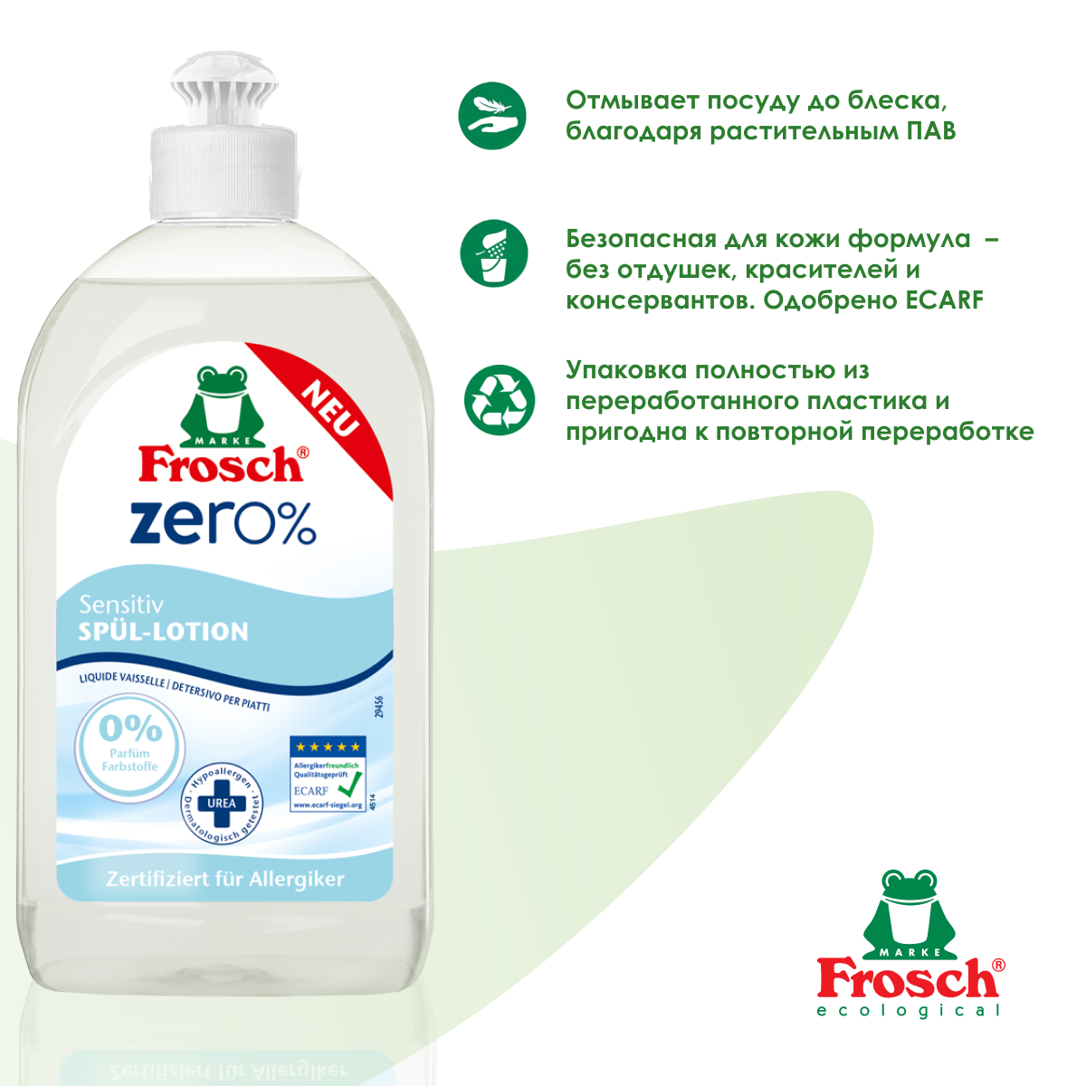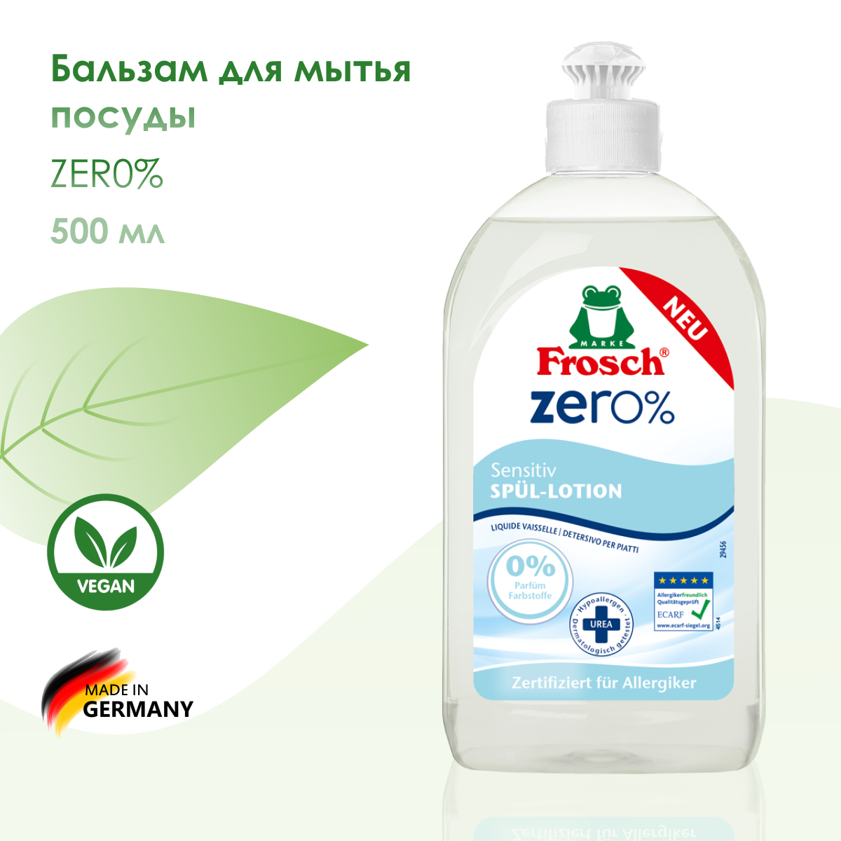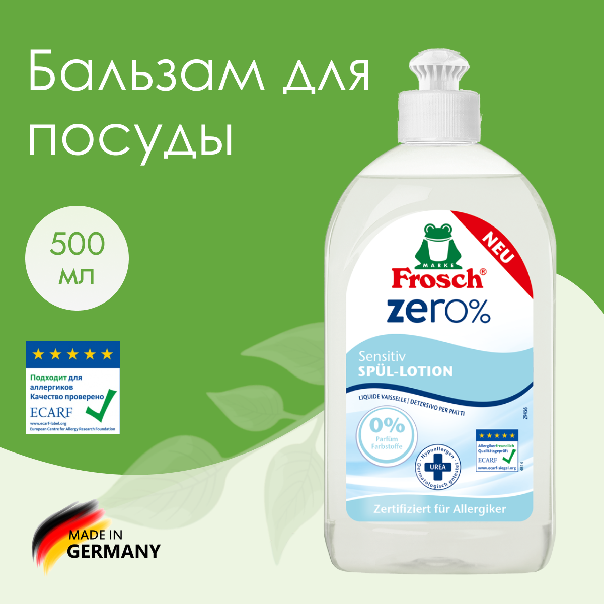 Frosch ZERO 0% Средство для мытья посуды бальзам Сенситив 500 мл интересное: