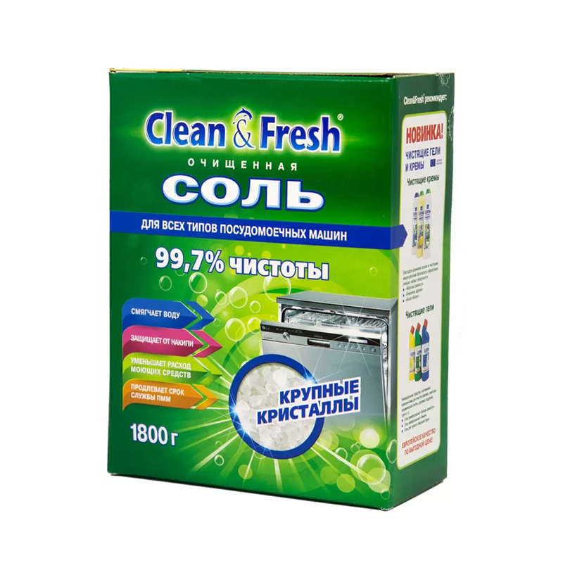 Соль для посудомоечных машин Clean&Fresh Гранулированная 1800 г интересное: