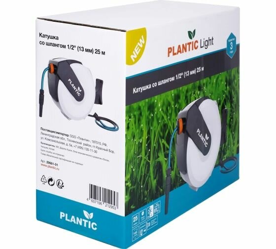| Комплектация | Катушка со шлангом 1/2" (13 мм) 25 м Plantic Light |