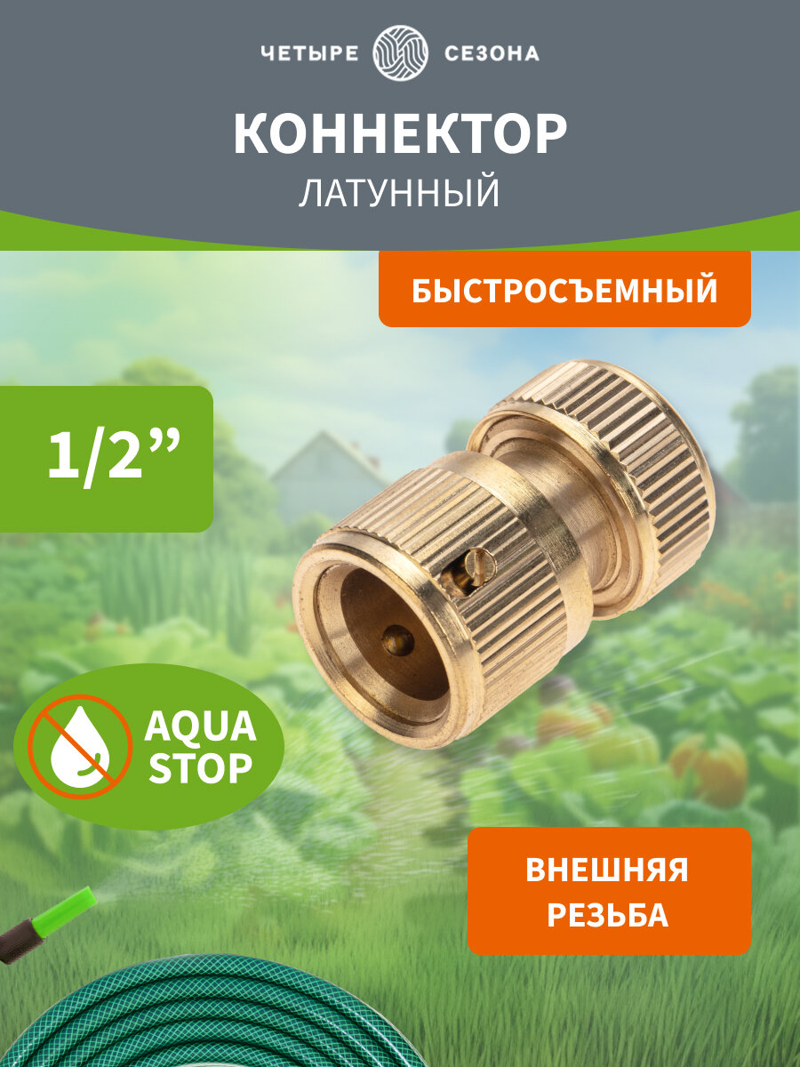 Коннектор для шланга штуцер латунный, быстросъемный, 1/2", с аквастопом четыре сезона интересное: