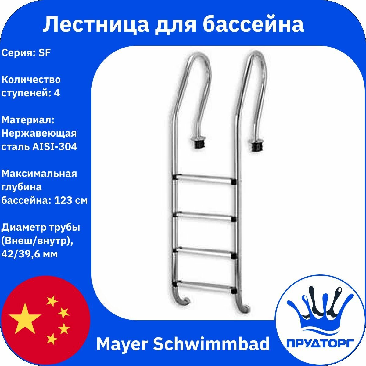 Лестница 4 ступени с узким бортом Mayer Schwimmbad MIXTA SF-415 AISI-304 интересное: