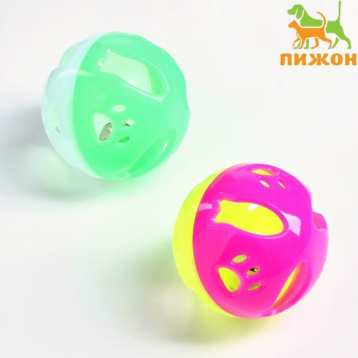Купить Набор из 2 шариков-погремушек "Рыбки и лапки", диаметр 3,8 см бело-зелёный/фиолетово-жёлтый 786560