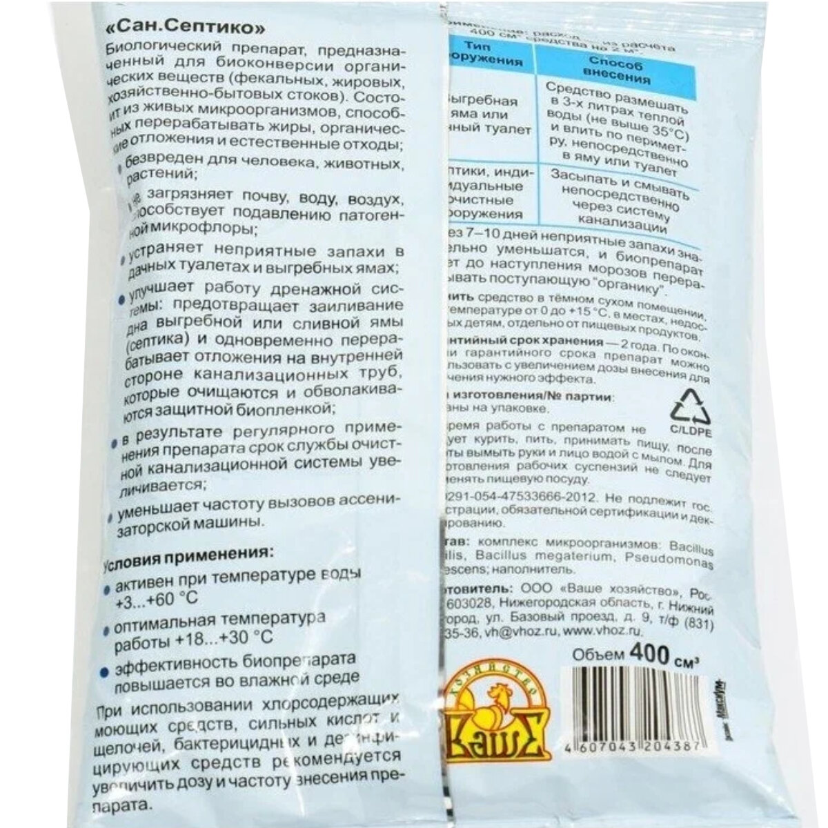 Сан.Септико 400 куб.см. для дачных туалетов и септиков Ваше хозяйство