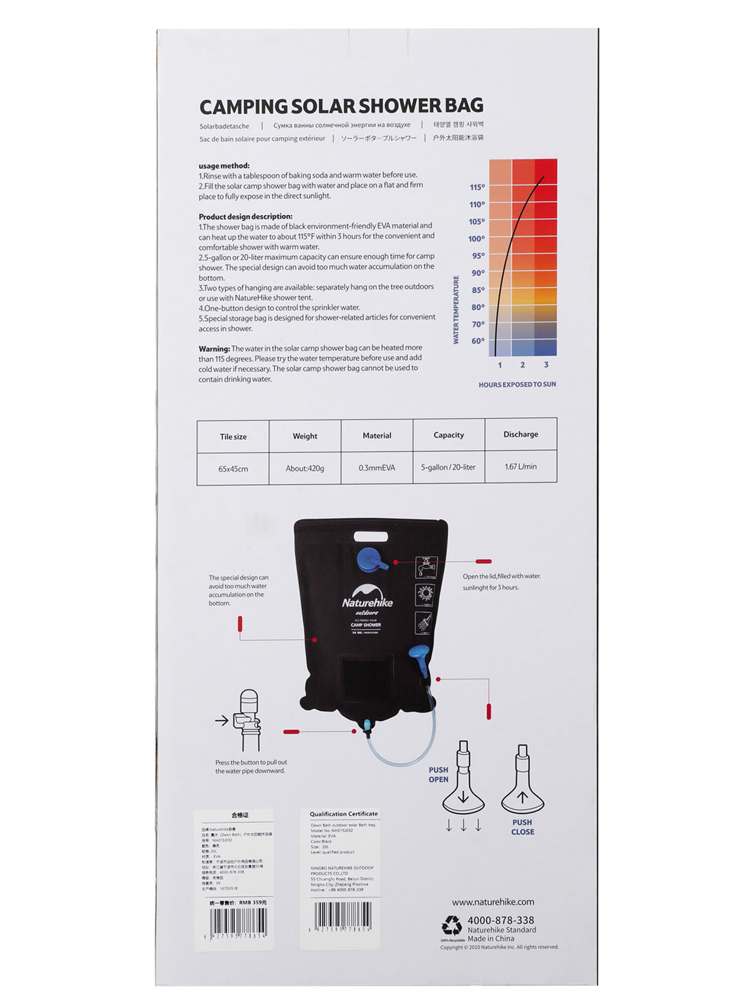 Душ туристический Naturehike Dawn Bath Outdoor Solar Shower Black интересное: