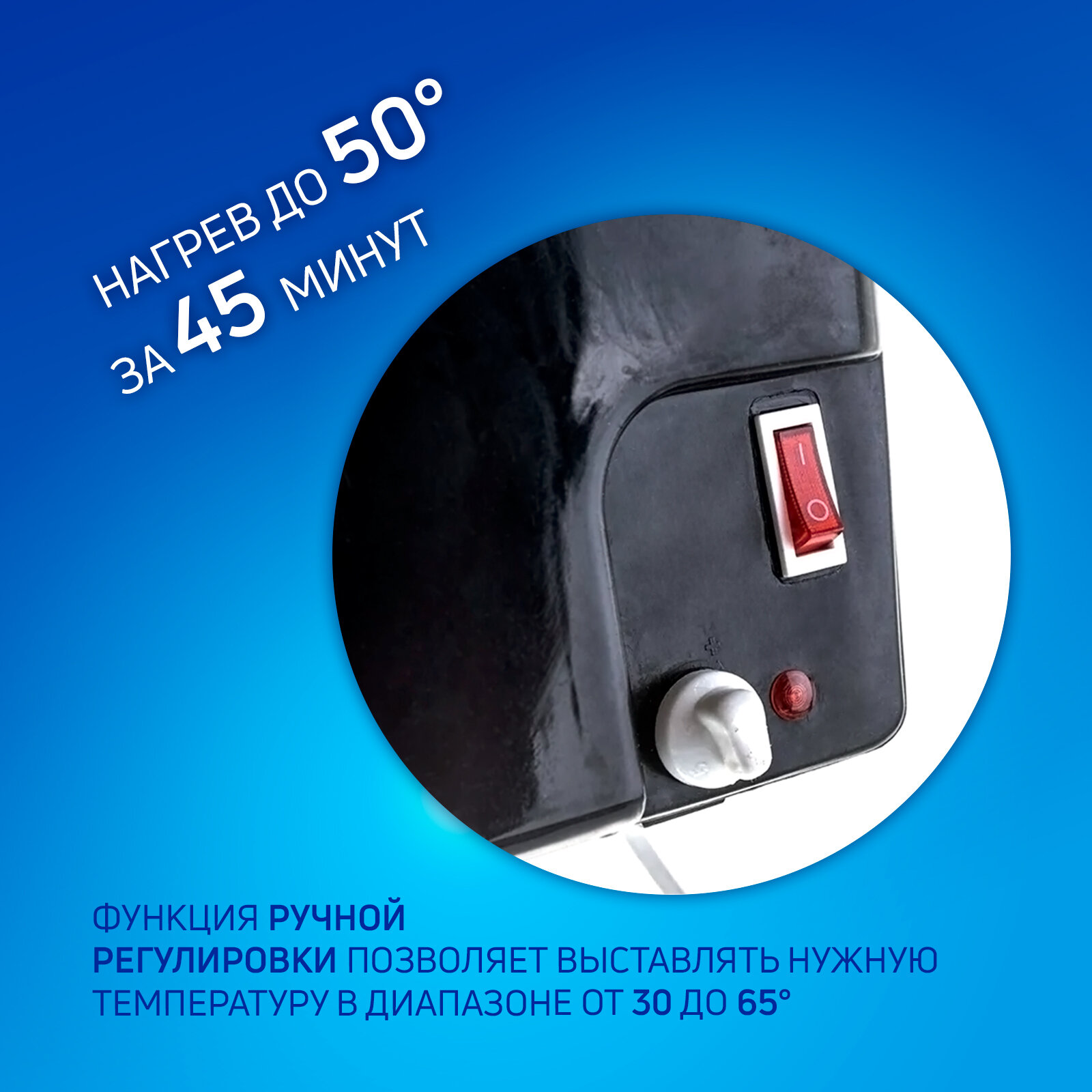 | Дополнительная информация | автоматическое отключение нагревательных элементов при достижении заданного уровня нагрева, наличие индикатора включения, в комплекте лейка с краном |