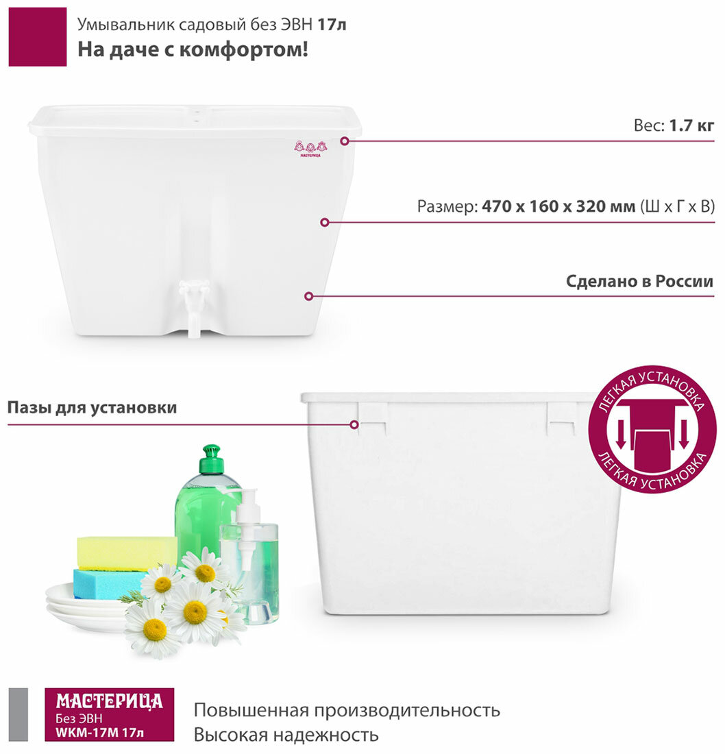 Ниже Вы можете прочитать отзывы на Умывальник уличный на ножках Мастерица без ЭВН WKM-17M, ознакомится с подробными характеристиками, посмотреть интересные обзоры и фотографии на Умывальник уличный на ножках Мастерица без ЭВН WKM-17M.