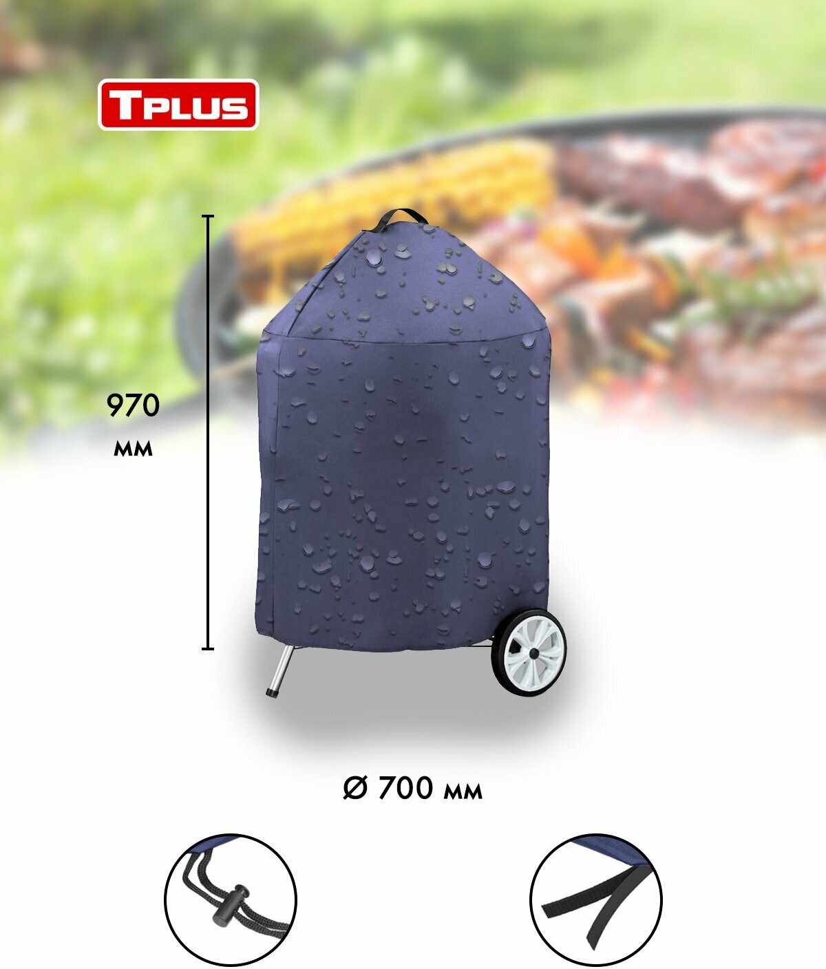 Чехол для круглого гриля D 53 см Tarrington House 630x550x800 мм (оксфорд 600, синий), Tplus