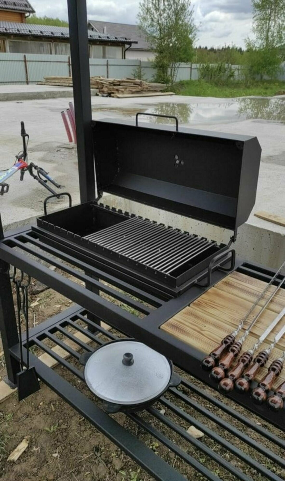 Мангал в стиле лофт AL 3 с крышкой барбекю и профессиональной печкой 52*52 интересное: