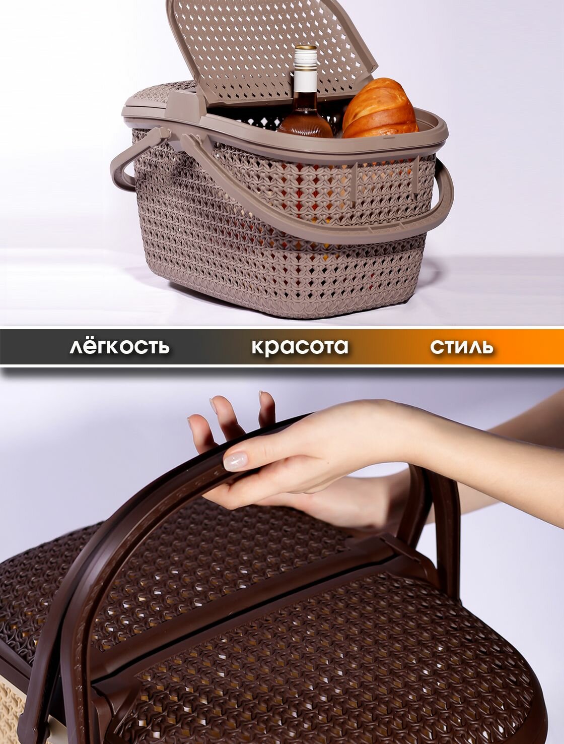 Корзина для пикника плетеная 25 л корзинка с ручками для путешествий, интересное: