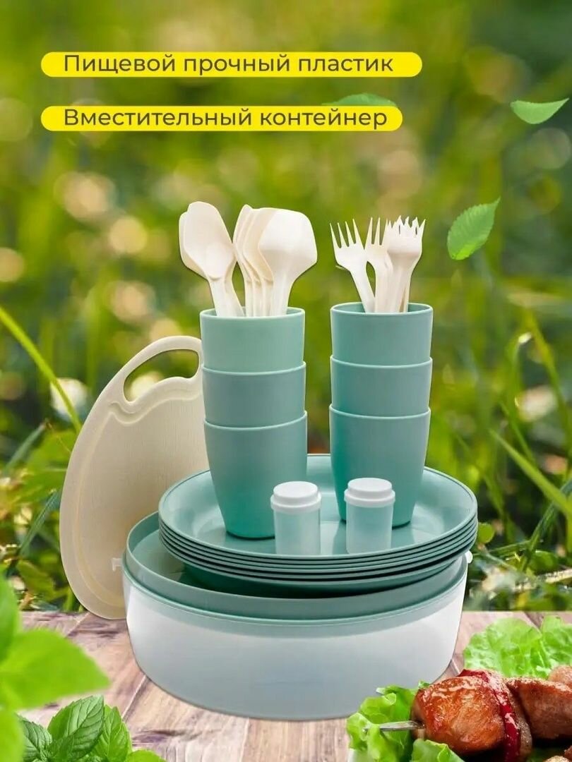 Набор для пикника на 6 персон 30 предметов. Набор для пикника пластиковый . интересное: