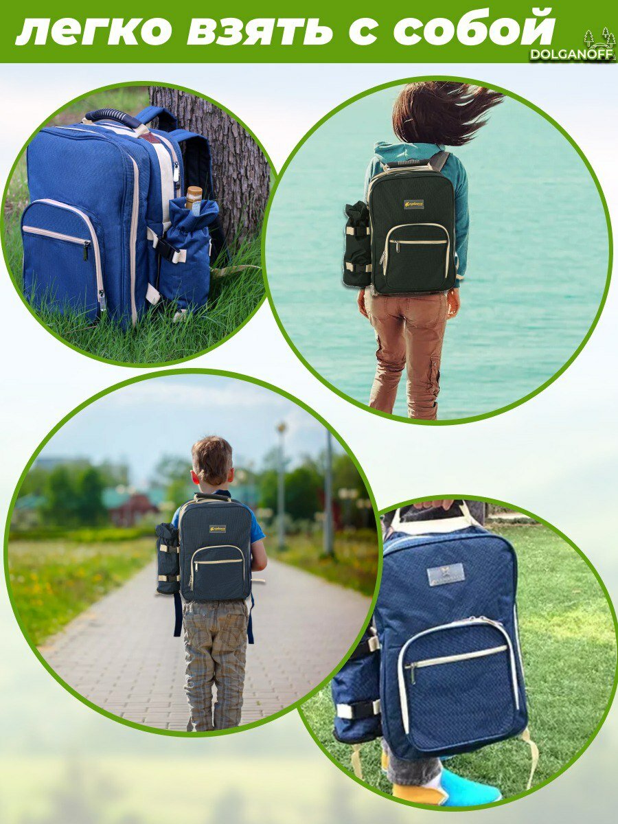 Набор посуды для туристов, в синем рюкзаке, DOLGANOFF, на 4 персоны интересное: