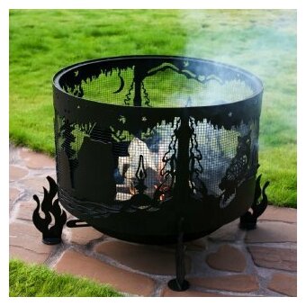 Костровая чаша очаг-сфера с рисунком Лесная сказка из стали 4мм