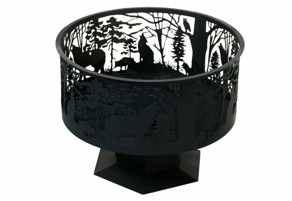 Костровая чаша очаг-сфера с рисунком Лесная сказка из стали 4мм