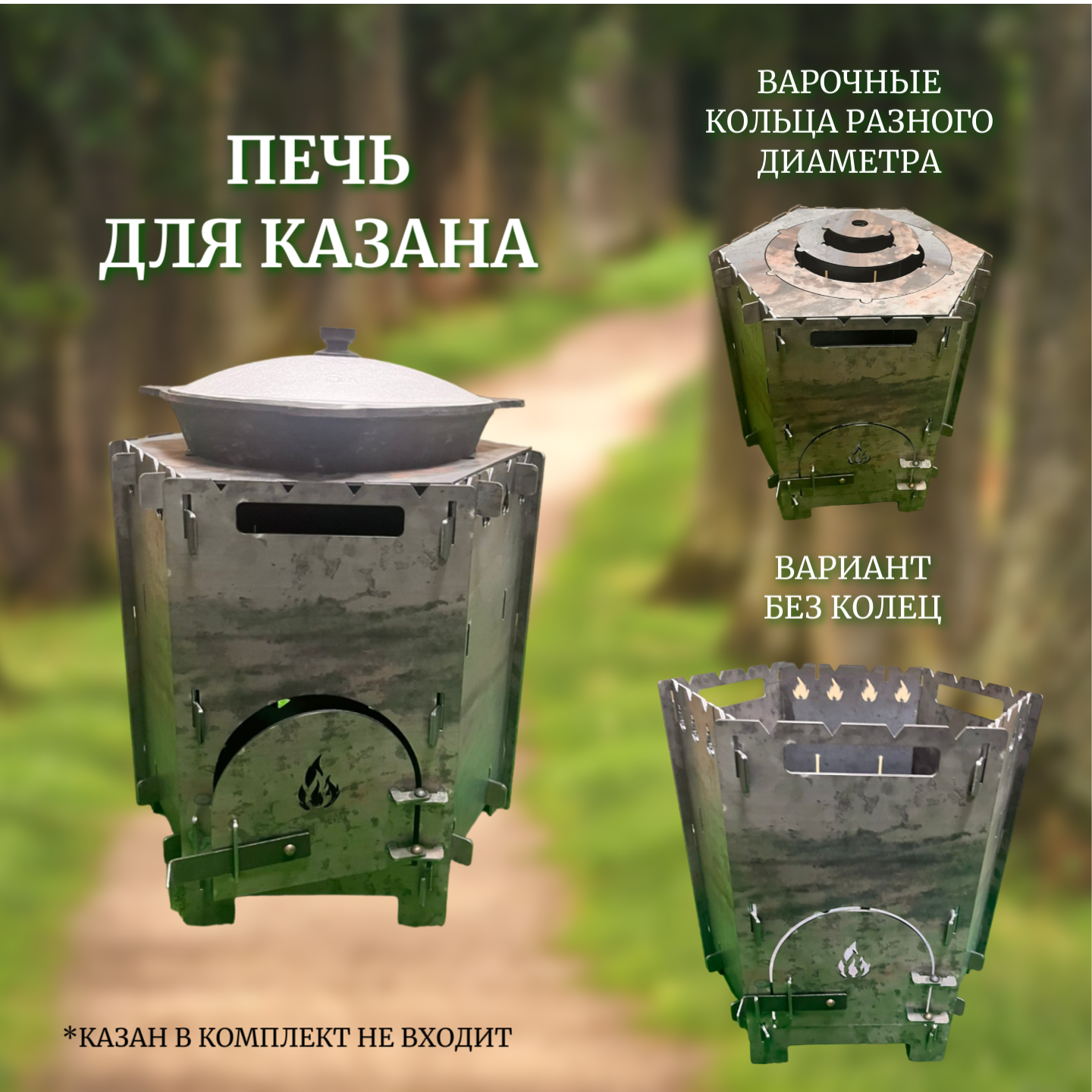 Печь для казана объемом 10 литров с ручками, съемные ножки, зольник