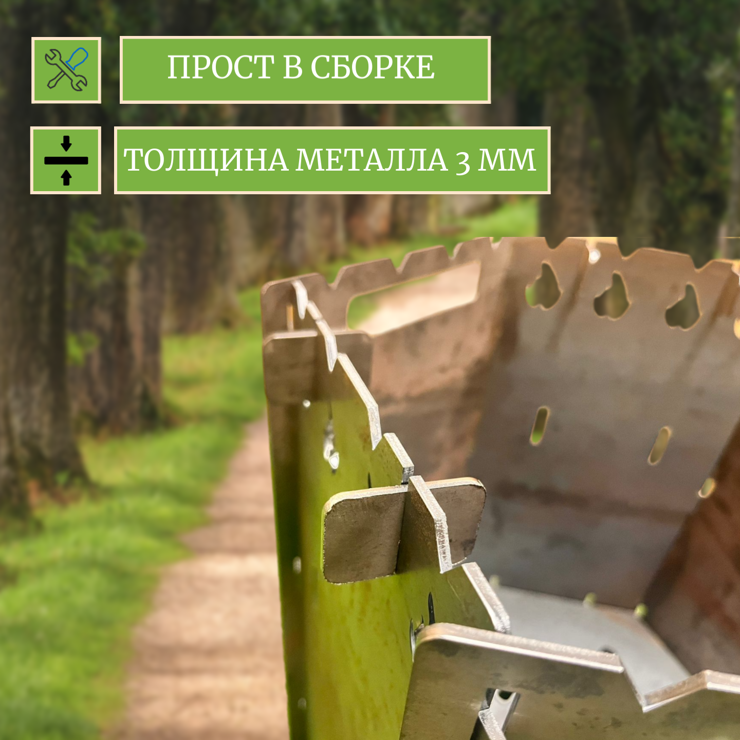 Печь мангал разборная для казана с Сумкой, костровая чаша, плита 4 в 1 с дверцей, сталь 3 мм. Горячая Сталь.