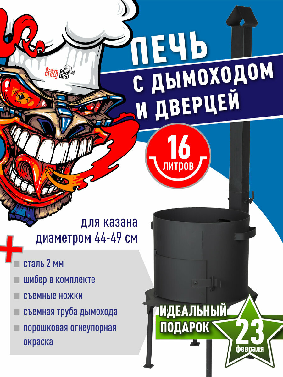 Печь (учаг) для казана 16 литров с трубой и дверцей интересное: