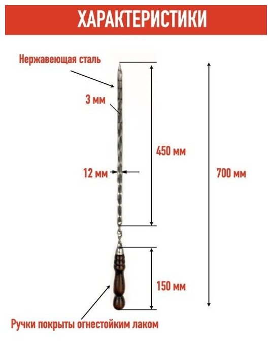 Набор шампуров с деревянной ручкой 45 см (6 шампуров) интересное: