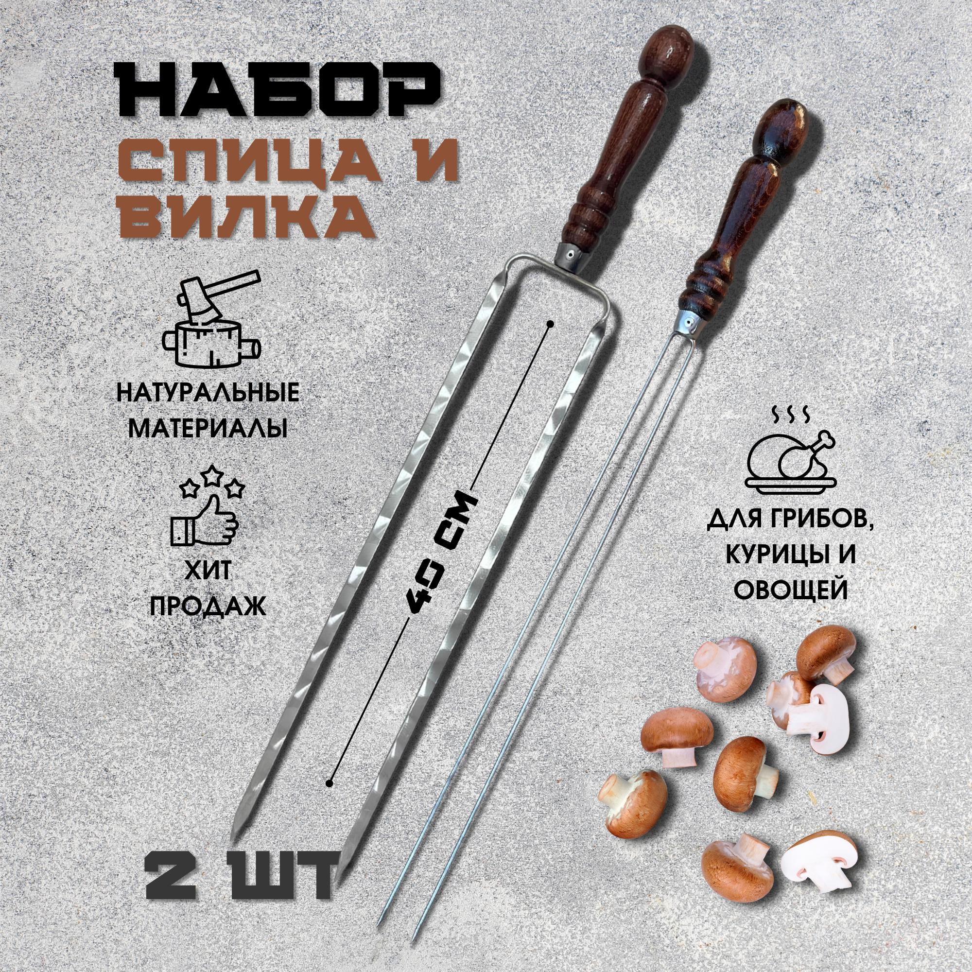 Шампура-спицы Пикник Кавказ РЗ40 с деревянной ручкой для грибов 2 шт.