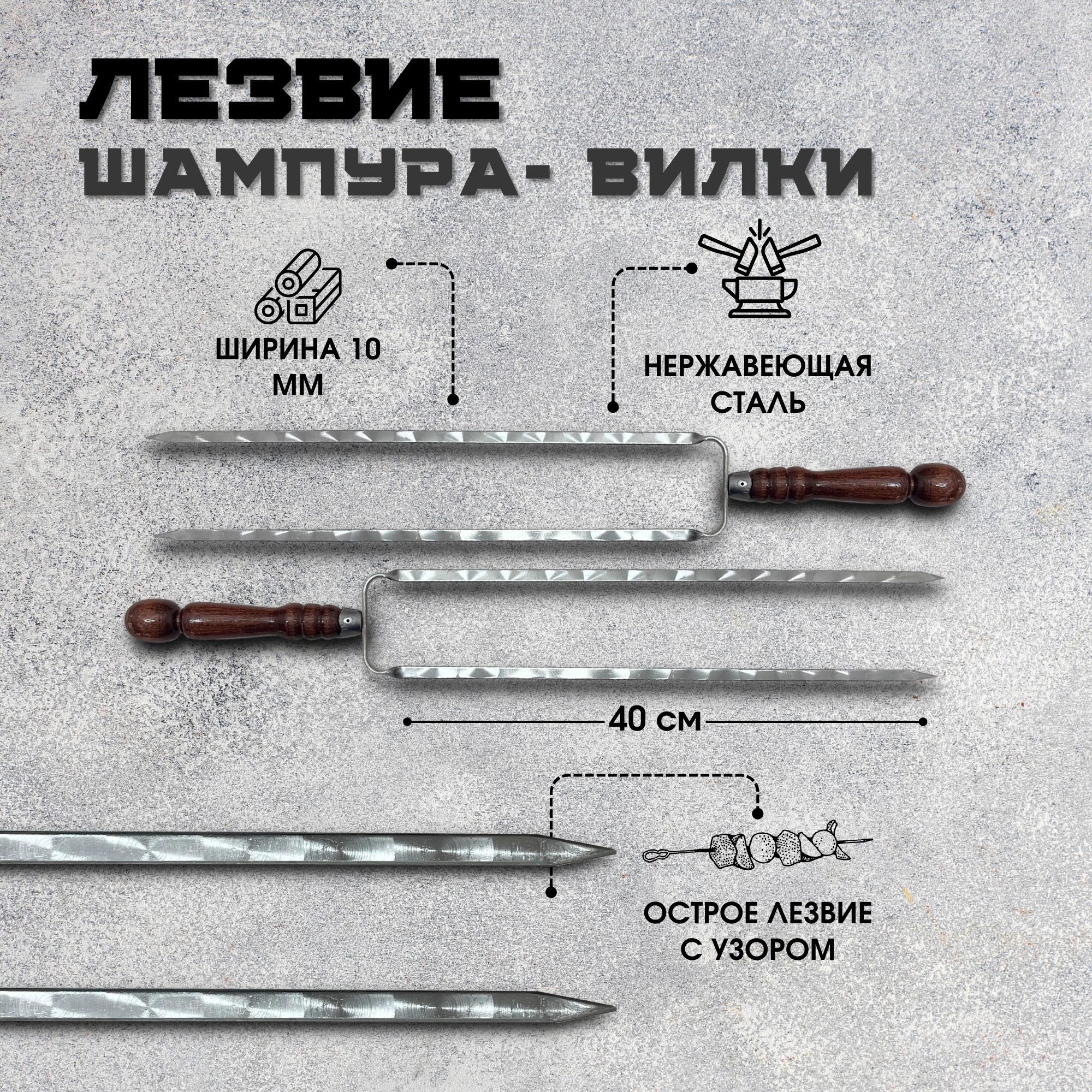 | Комплектация | шампура с деревянной ручкой |
