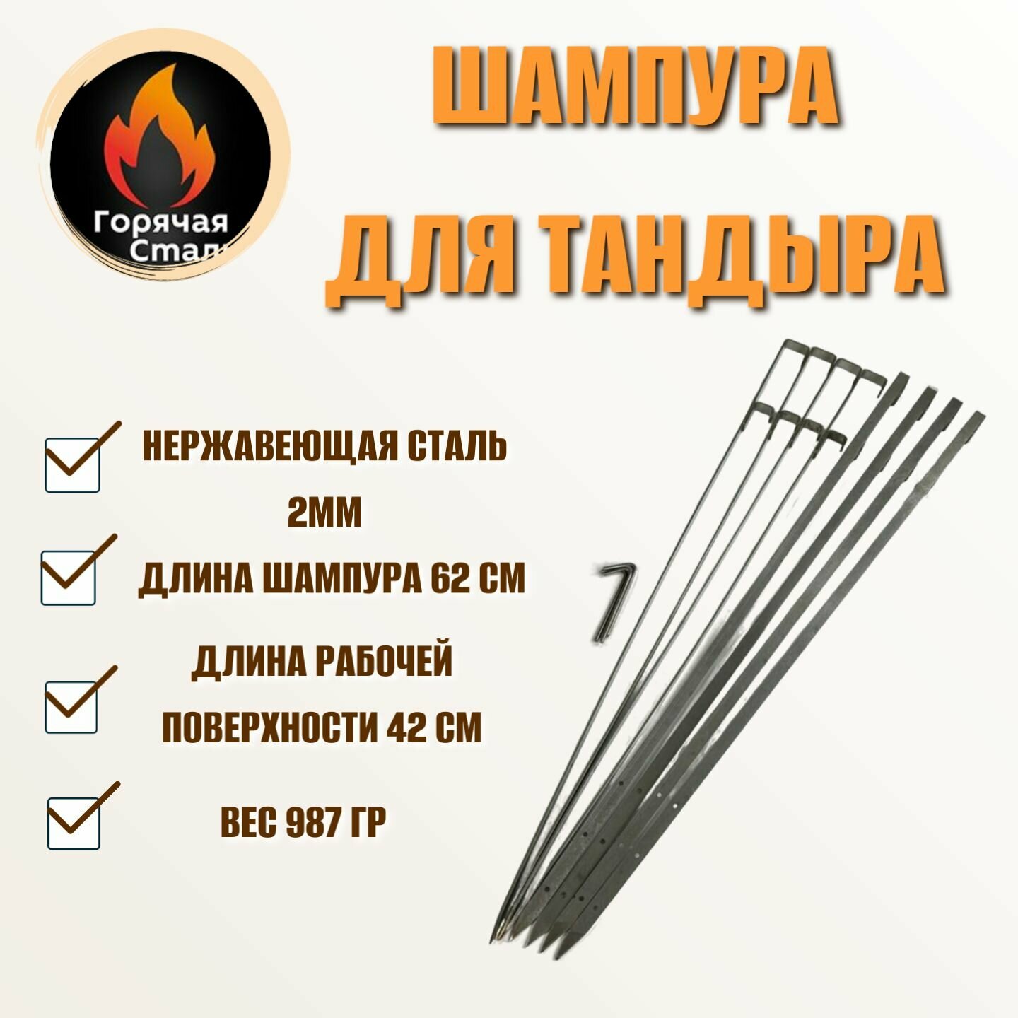 Набор Шампуров для тандыра малый 62 см, нержавеющая сталь 2 мм, Горячая Сталь. интересное: