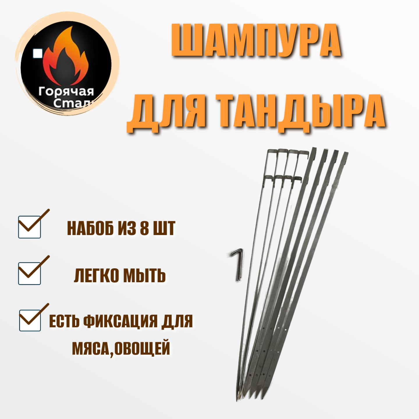 Набор Шампуров для тандыра, нержавеющая сталь 2 мм, Горячая Сталь. интересное: