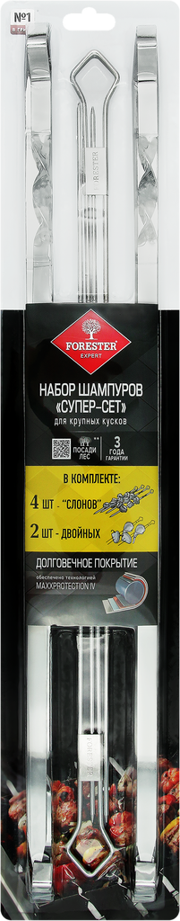 Forester Набор шампуров "Супер - сет для шашлыка" для крупных кусков, (4 шампура "слона", 2 двойных)