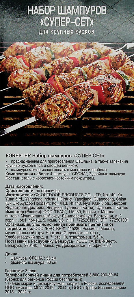 Набор шампуров Forester " Супер-СЕТ для шашлыка" для крупных кусков, (4 шампура " слона" +2 двойных) интересное: