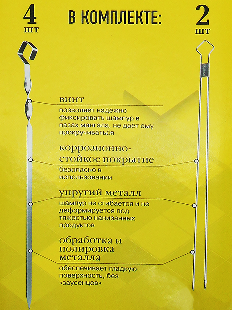 | Дополнительная информация | Предназначен для приготовления шашлыков из мяса, а также других видов продуктов птицы, рыбы, овощей. |