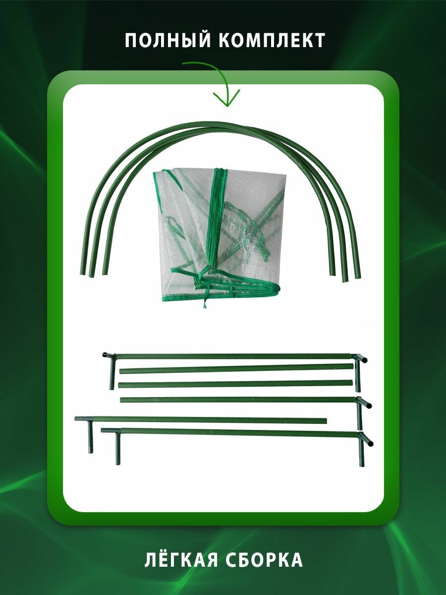 | Комплектация | каркас парника с дугами - 1 шт; чехол для парника из армированной плёнки |