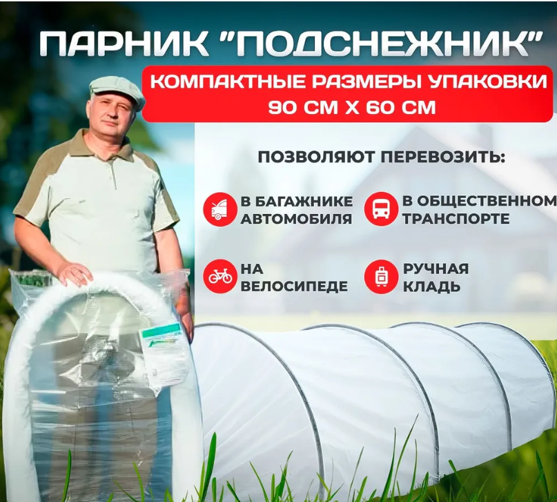 Парник для дачи "Подснежник" 6 метров, защита растений от ночных заморозков, дождей, ветров. Дуги для парника ПНД 20 мм, спанбонд 42 плотности интересное: