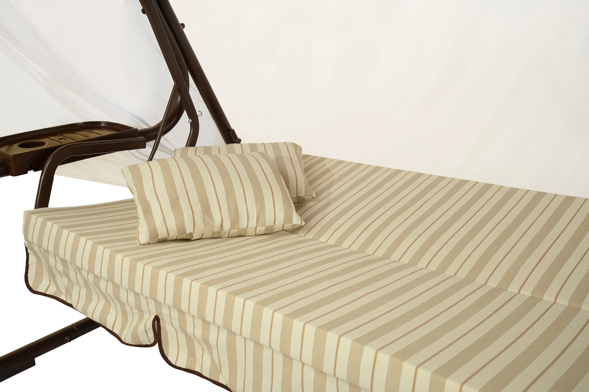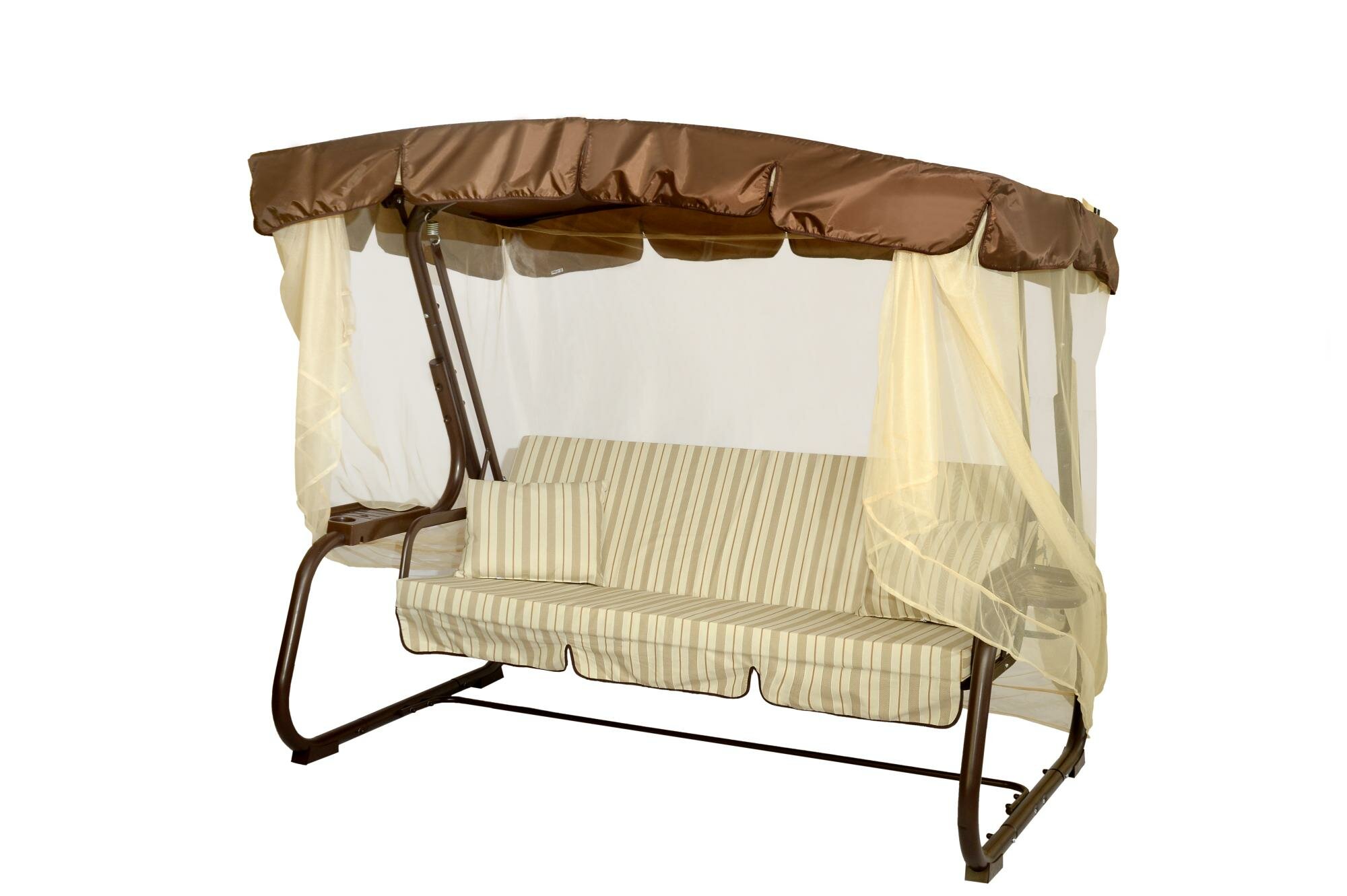 Купить Качели садовые 3-х местные Мебельторг Турин Каркас коричневый/Бежевый рис. полоска