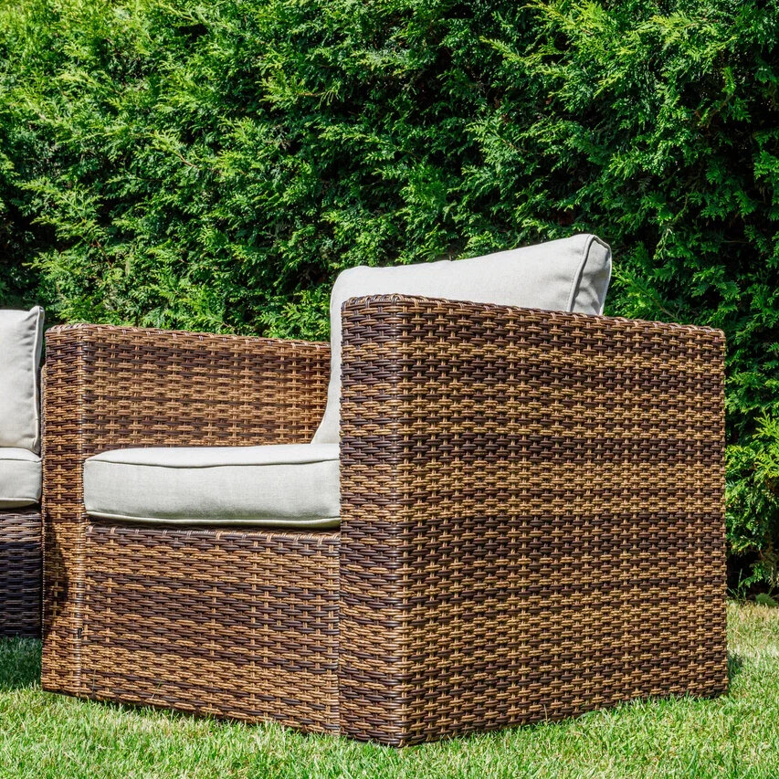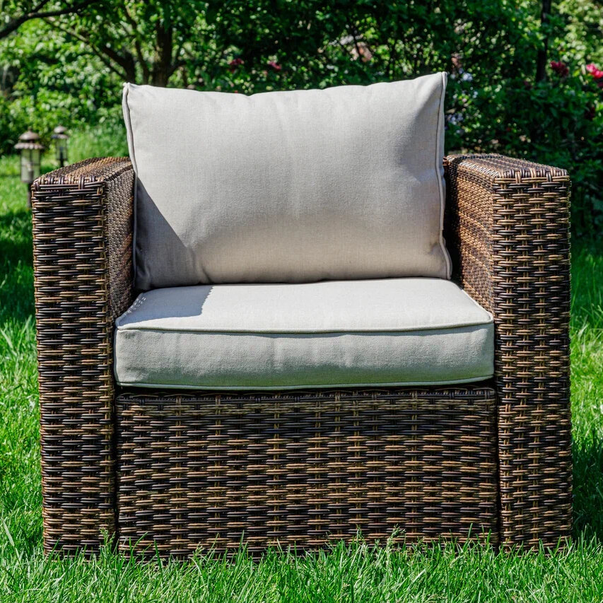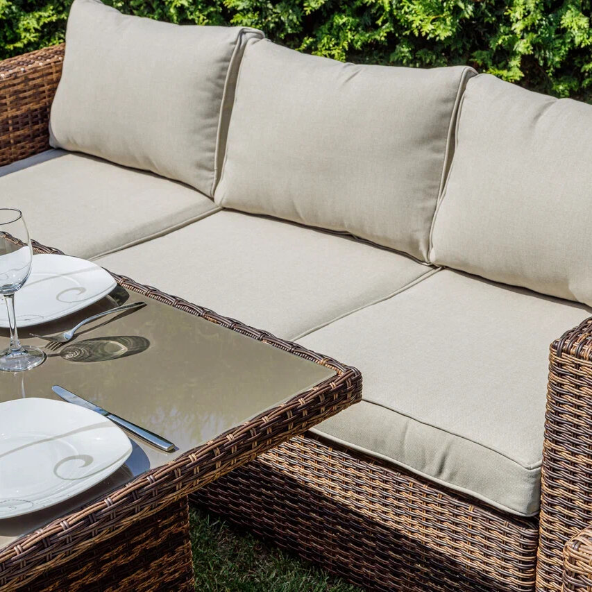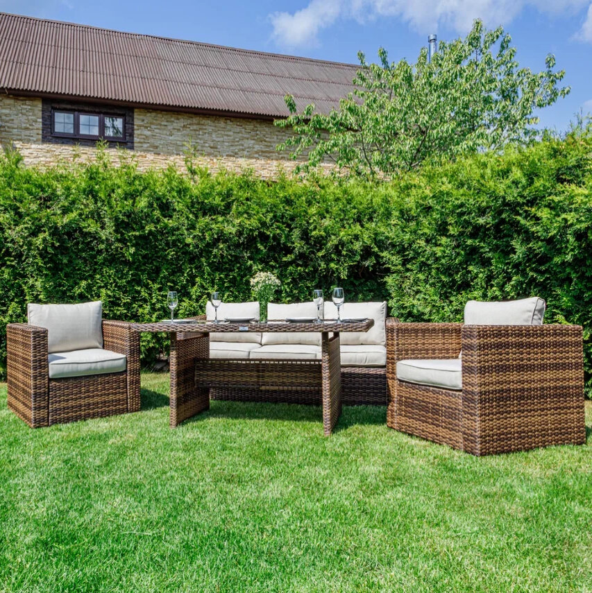 | Комплектация | Трехместный диван, два кресла, обеденный стол, подушки |