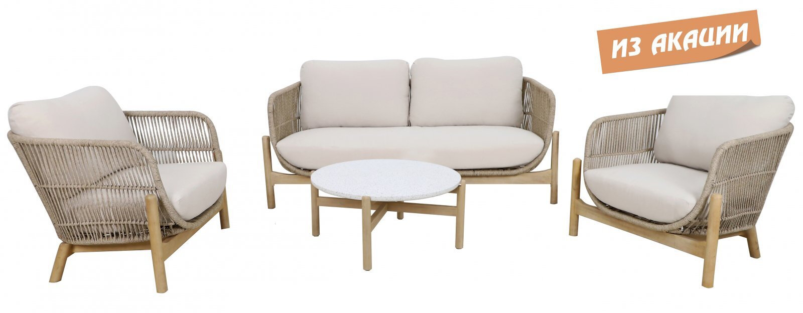 Купить Набор садовой плетеной мебели из акации Tagliamento Talara, цвет бежевый, на 4 персоны