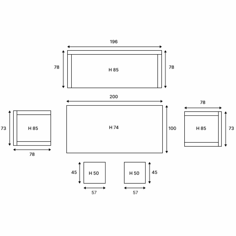| Дополнительная информация | диван: 196*78*85 см; кресло (2 шт): 73*78*85 см; пуф (2 шт): 45*45*50 см; стол: 200*100*74 см |
