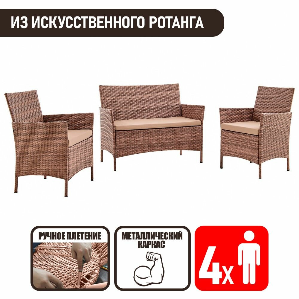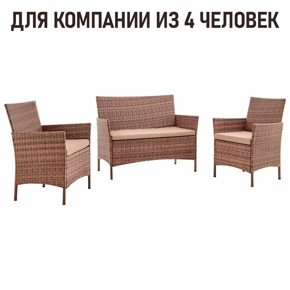 Купить Садовая мебель для дачи из искусственного ротанга Киото Лайт капучино. Набор садовой мебели