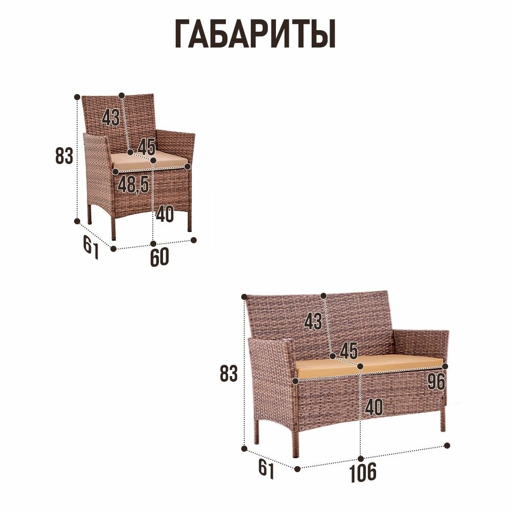 Набор террасной мебели Глория-2 с1195/125 / Обеденный стол / диван / 2 кресла